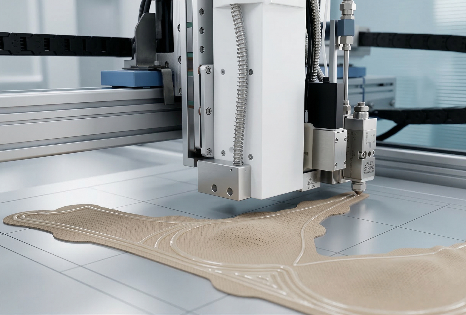 Wie stützt man eine Brust sicher, wenn man den harten Metallbügel weglässt? Die Antwort ist unsere innovative Jelly-Strip-Technologie. Wir integrieren flüssig aufgetragene, hochflexible Harz-Streifen (das "Jelly") direkt in die Unterbrustkonstruktion des Stoffes. Diese Streifen härten flexibel aus und ahmen die Stützfunktion eines Bügels nach.